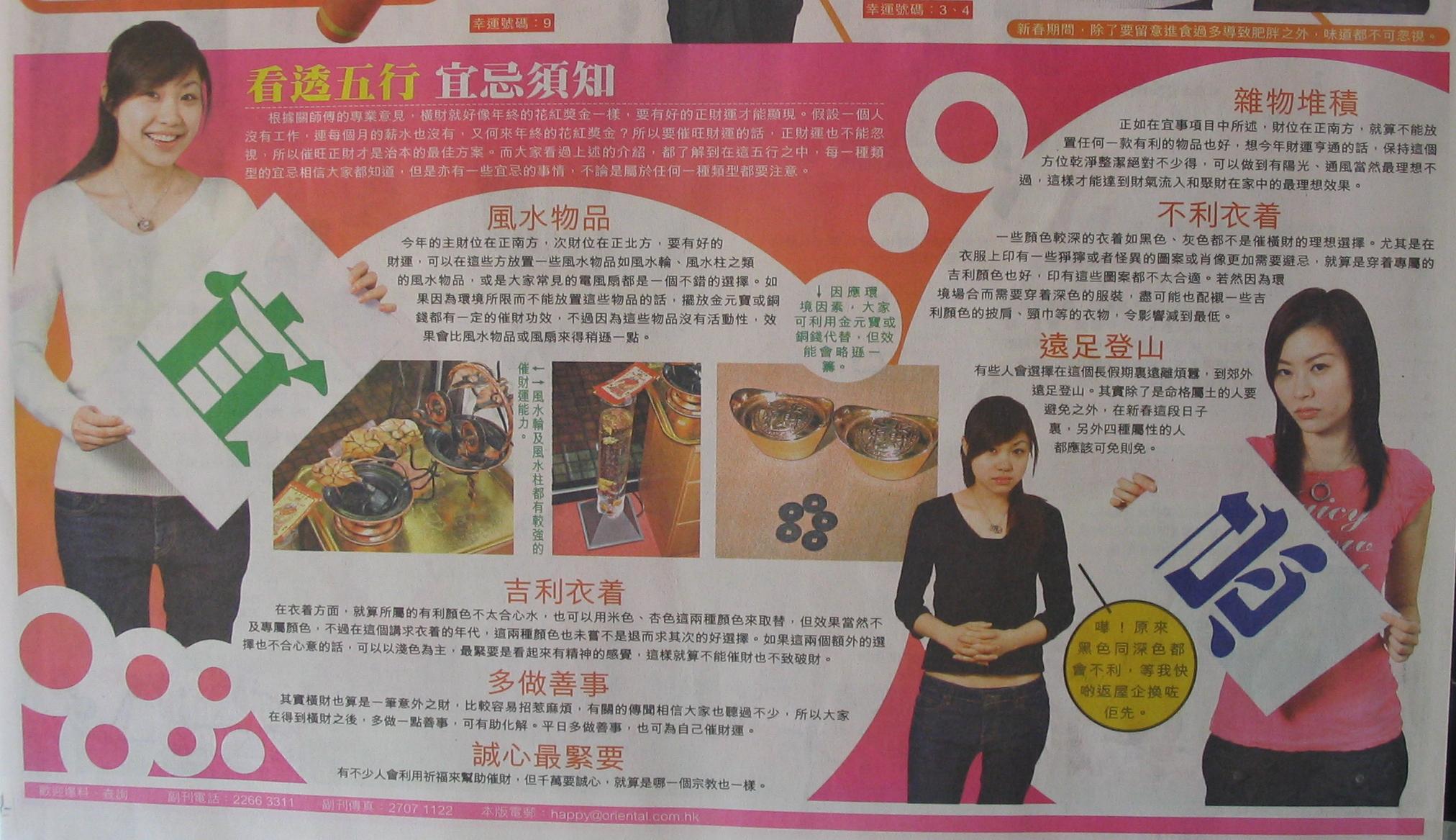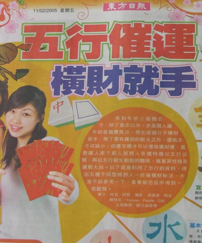 東方日報在 2005/2/11 乙酉年初三 刊登了本人在訪問中提供的財運資料。