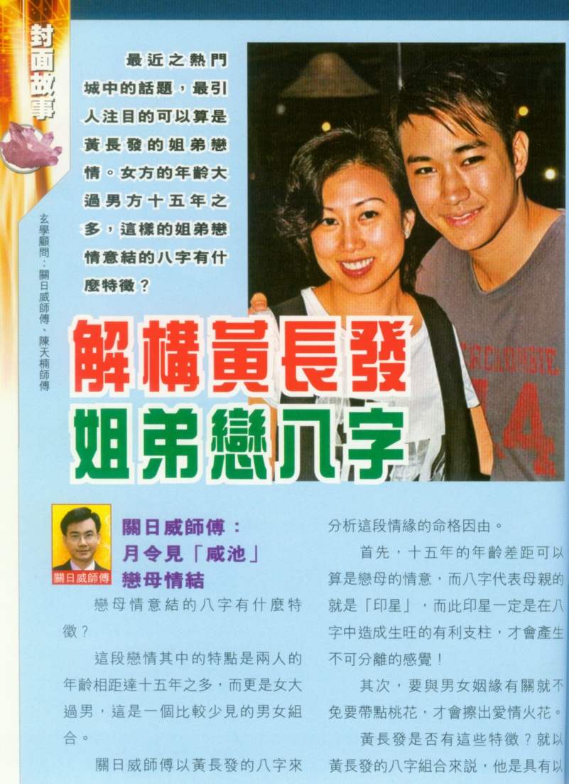 2009年3月 在睇相王 發表 有關〔黃長發 姊弟戀的八字分析〕文章。