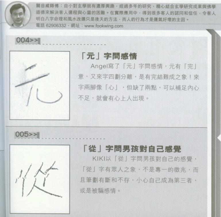 2009年3月 在睇相王 發表 有關〔測字〕文章。