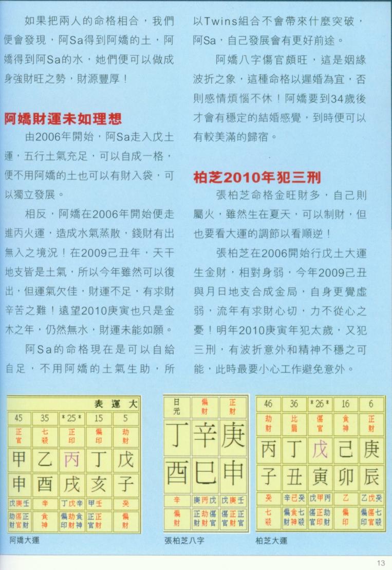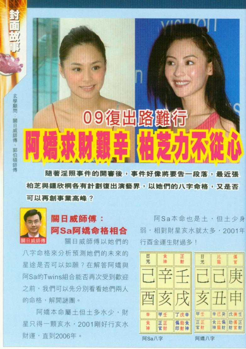 2009年4月 在睇相王 發表 有關〔張柏芝與阿嬌